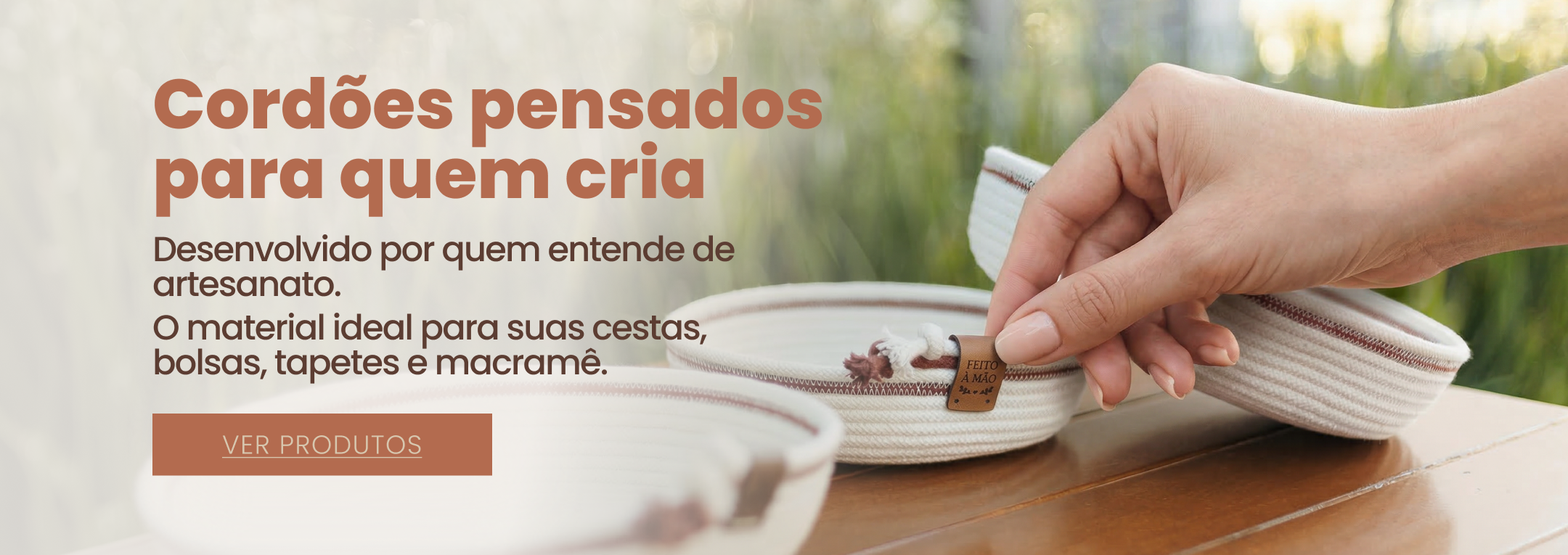 Somos uma marca nova, nascida para caminhar junto com quem vive o artesanal. Queremos tornar a cestaria acessível, inovadora e cheia de possibilidades, oferecendo em um só lugar tudo o que você precisa para criar com liberdade e qualidade.
